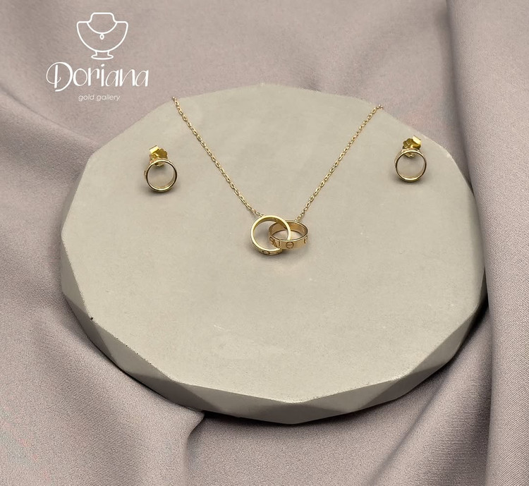 نیم ست طلا شامل گردنبند و گوشواره طلا مدل لاو کارتیر
